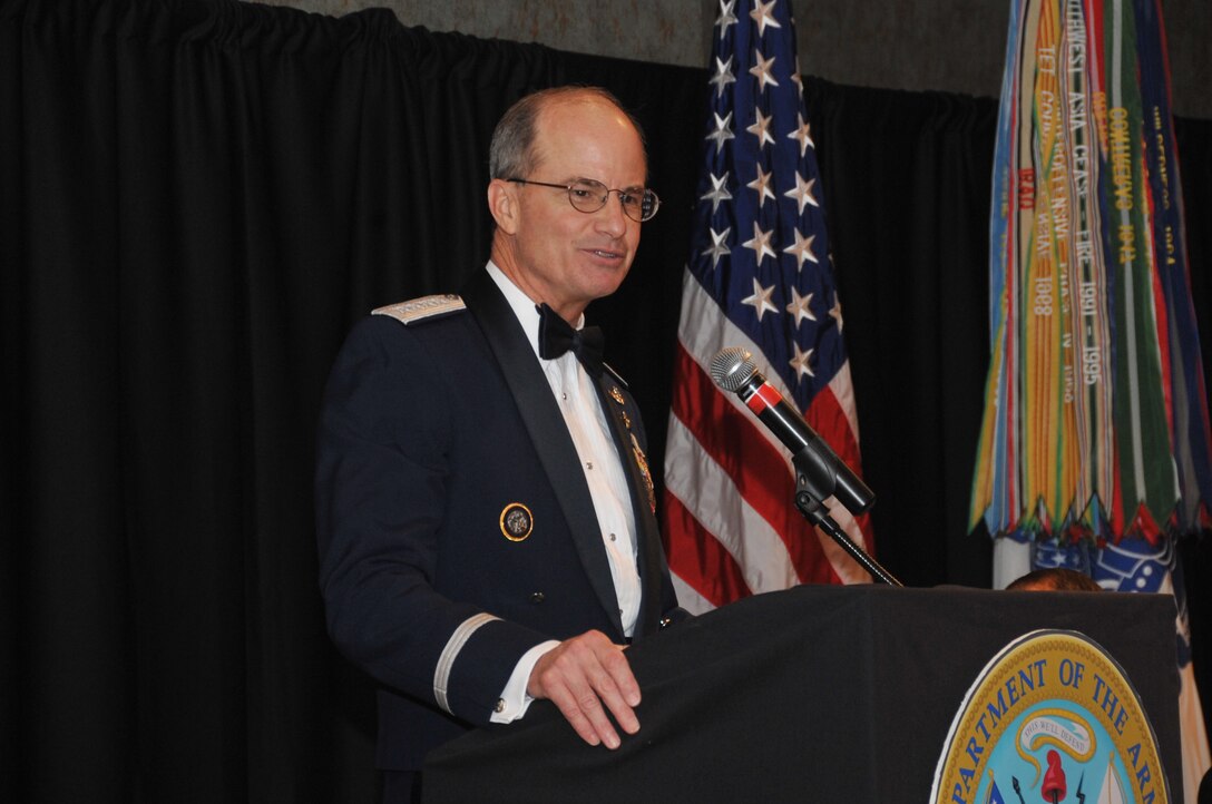 OMAHA, Neb. - Gen. Kevin P. Chilton, U.S. Strategic Command commander, gives a speech after being inducted into the Strategic Order of the Sword and Shield during a ceremony Dec. 17.