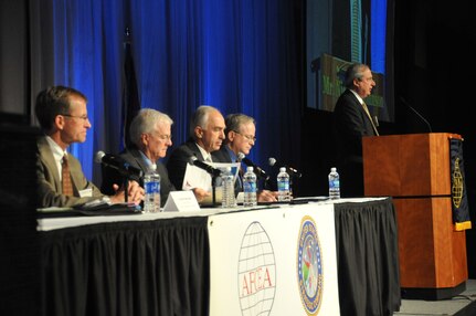 Panelists (left to right) Dr. Darren McKnight; Dr. William Ailor; Dr. Heiner Klinkrad; Earl White; and moderator Nicholas Johnson, Chief Scientist for Orbital Debris, NASA; during the panel "Space Situational Awareness - Debris Management and Mitigation Strategies" at the 2010 USSTRATCOM Space Symposium, held Nov 2-3 at the Qwest Center, Omaha Neb. "Conducting Military Space Operations – Advancing from Today to Tomorrow" is the theme for the 2010 USSTRATCOM Space Symposium. This annual symposium offers space and defense professionals an unparalleled opportunity for education, interactive discussion and exposure to the latest space operations technologies to government officials, military leaders, top industry executives, exhibitors, educators and students.