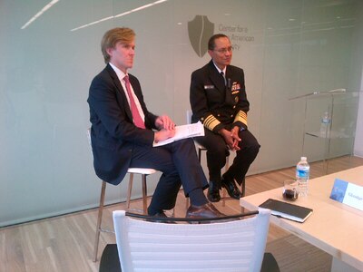 U.S. Navy Adm. Cecil D. Haney, U.S. Strategic Command (USSTRATCOM) commander (right), speaks during a panel discussion on “Space and Space Deterrence” with moderator and Senior Fellow Bridge Colby (left) at the Center for a New American Security (CNAS) in Washington, D.C., Jan. 22, 2016. In his remarks, Haney recognized CNAS for its “continued focus on global challenges.” He discussed the growing threat environment in space, the role of space in deterrence strategy, and USSTRATCOM’s ongoing efforts to solve some of the challenges we face in space. After his remarks, Haney answered several questions from panel members. One of nine DoD unified combatant commands, USSTRATCOM has global strategic missions, assigned through the Unified Command Plan, which include strategic deterrence; space operations; cyberspace operations; joint electronic warfare; global strike; missile defense; intelligence, surveillance and reconnaissance; combating weapons of mass destruction; and analysis and targeting. (USSTRATCOM photo by U.S. Navy Capt. Pamela S. Kunze)